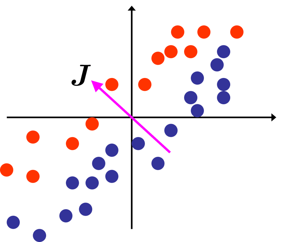 Now, here’s the neat idea. I can do exactly the same plot, but I’m just going to rotate it clockwise by 45-degrees. A little bit of high-school/college linear algebra will convince you that I can do that by creating two new features,