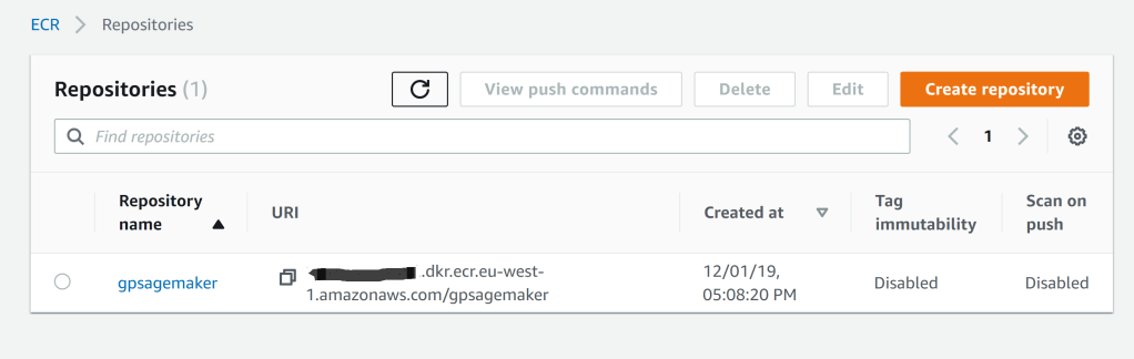 Screenshot of our Gaussian Process SageMaker Docker container in AWS Elastic Container Registry (ECR) – ready to use within a SageMaker notebook.
