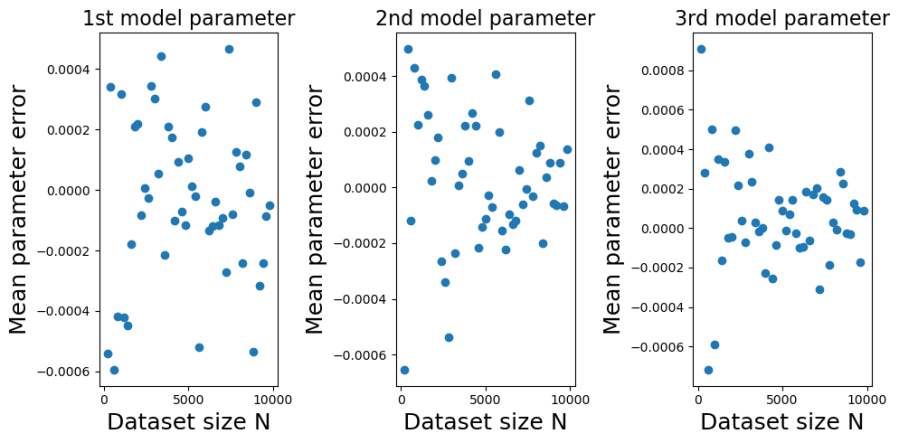 “Okay, okay, I get it. Inconsistent estimators are bad. But I don’t have an infinite amount of training data, so how can I actually check if my algorithm produces a consistent estimator? Surely, it can’t be done?” Yes, it can be done. What we’re looking for is convergence, i.e. parameter estimates getting closer and closer to the true values as we increase the training set size. I’ll give a demonstration of this in the next section when I show how to set up some simulation tests.